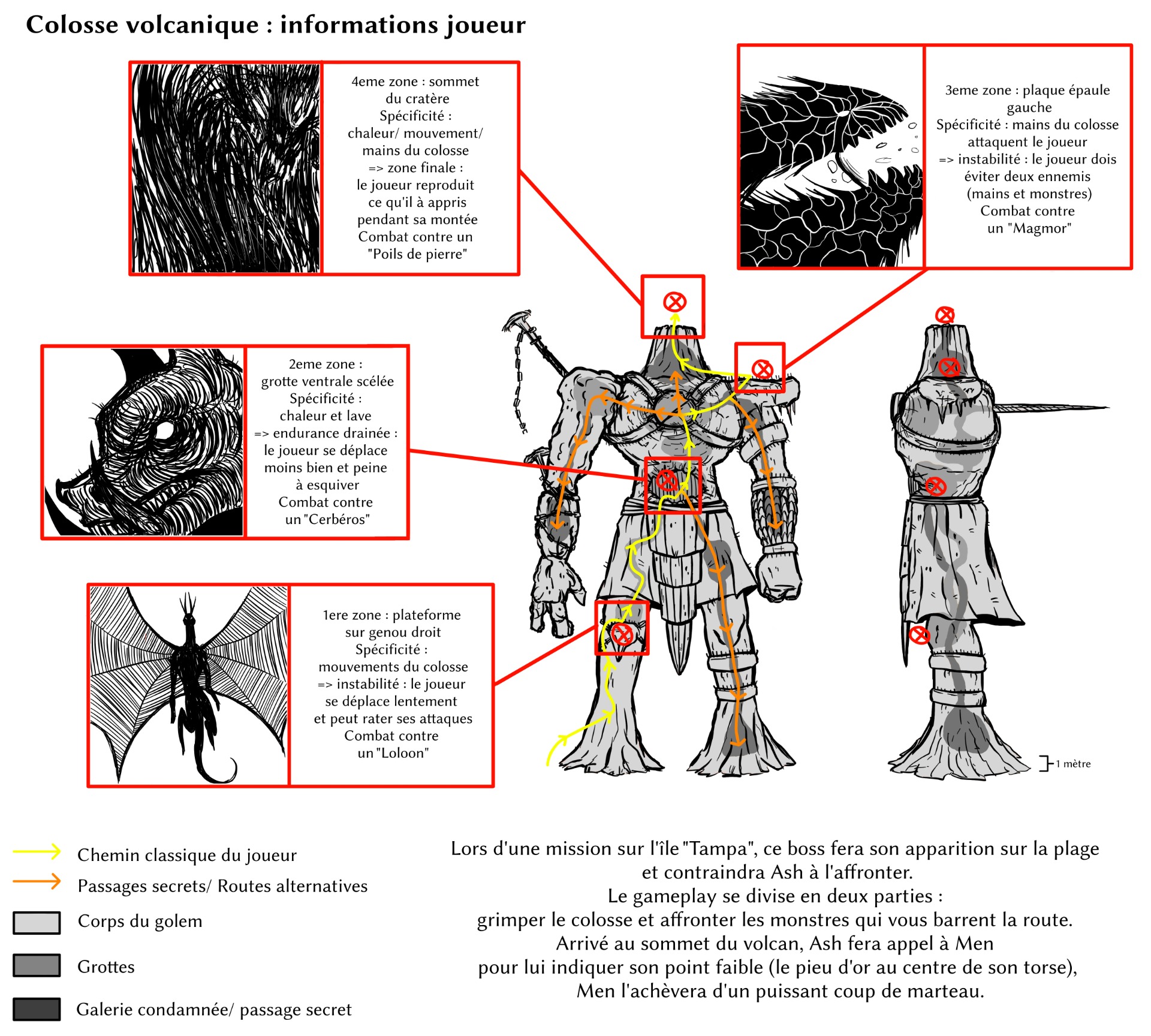 Une idée de gameplay inspirée par les jeux "Shadow Of The Colossus", "God Of War" et certains monstres des jeux "Monster Hunter".